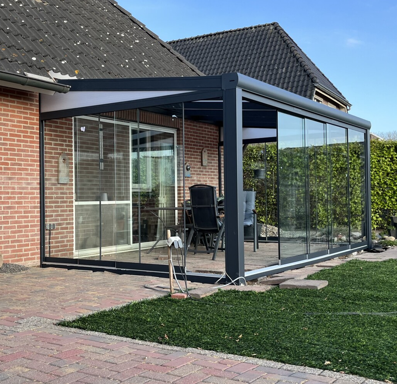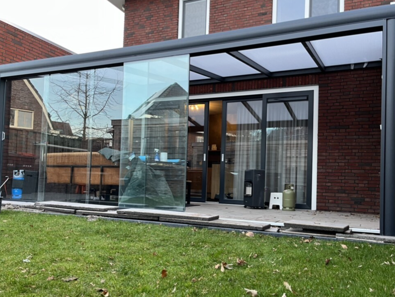De glazen schuifwanden van pro overkappingen worden compleet op maat geleverd. De glazen schuifwanden zijn in de breedte 90, 93, 98 en 103 beschikbaar. Al onze glazen schuifwanden zijn zowel als voor- en als zijwand verkrijgbaar.